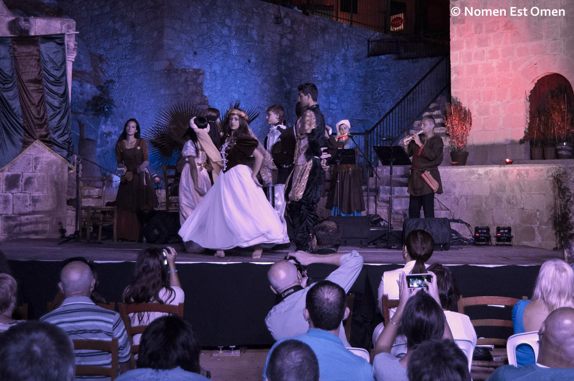 Sighişoara Medievală 2015 – Iubitori de muzică medievală înfruntă arşiţa verii alături de Nomen Est Omen Nomen Est Omen a susţinut în vara anului 2015 cinci concerte în cadrul Festivalului Medieval Sighişoara, patru pe scena din Piaţa Mare, pe timp de seară, pe o scenă de 600 de metri pătraţi, unul în cea a Primăriei, la miezul zilei pe o scenă fără copertină, într-un moment în care mercurul termometrului arăta 40 de grade Celsius la umbră. Interesant şi în acelaşi timp îmbucurător a fost faptul că la concert au asistat câteva sute de persoane, dintre care câteva zeci de iubitori ai genului au stat, asemenea formaţiei, timp de o oră încheiată în plin soare. Pe parcursul spectacolului, Nomen Est Omen a primit aplauze şi apă plată de la nişte oameni într-adevăr frumoşi, pentru care arşita verii nu s-a constituit într-un motiv suficient de puternic de alegere a umbrei în dauna muzicii.