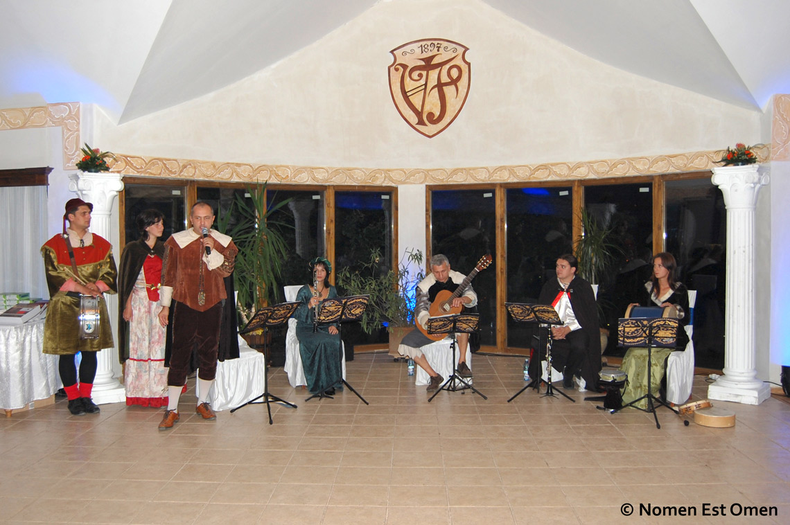 A vedea cinci fete frumoase la un loc, costumate în prinţese, este un eveniment mai rar decât chiar chinta royală (servită) din jocul de poker. Totuşi acest fapt este posibil, cu condiţia ca “masa de joc” să fie un festival medieval desfăşurat, să spunem, în inima Transilvaniei. În faţa celor cinci (fete), nu mai contează nici anul, nici locul, ci doar starea de graţie pe care o trăiesc participanţii la joc. Pentru Nomen Est Omen, jocul a fost cu acea ocazie un careu de patru compozitori ai Evului Mediu şi Renaşterii: Josquin Des Pres, Tielman Susato, Michael Praetorius şi John Dowland. La locul faptei, formaţia a “decartat” Codex Caioni şi “a intrat” în concert Cantigas de Santa Maria.