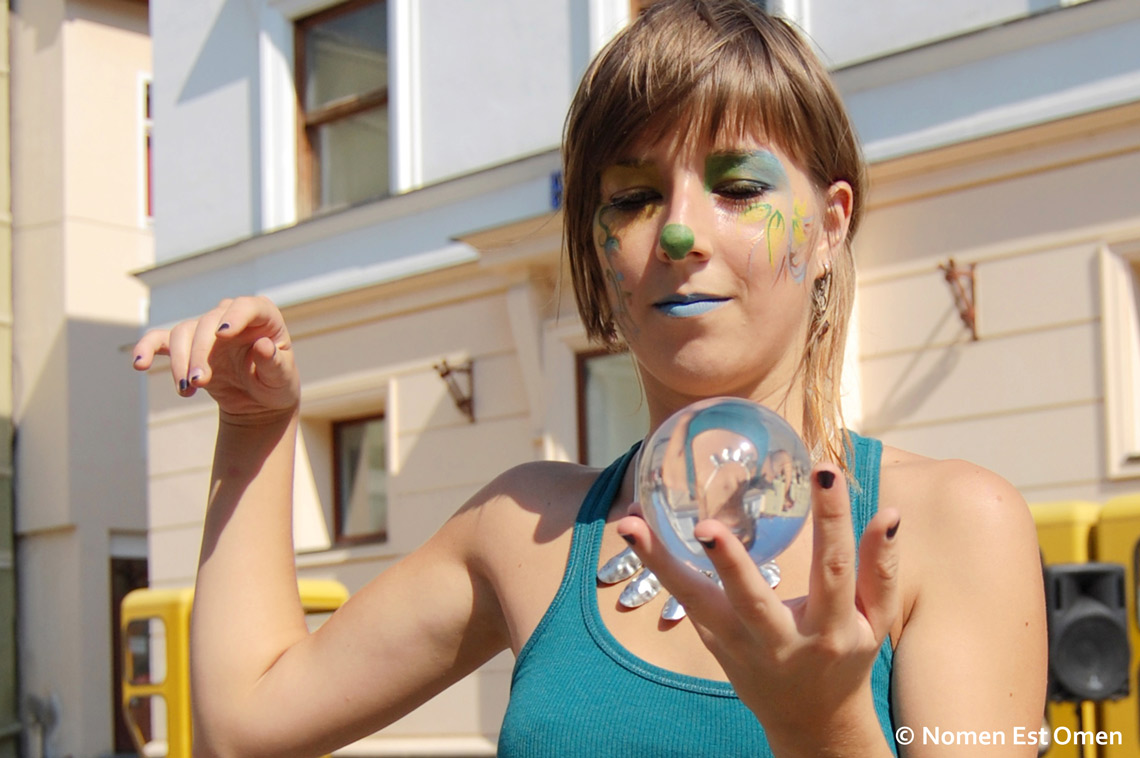 Globul magic însumează deopotrivă energia formei sferice, considerată încă din Antichitate perfectă şi pe cea a cristalului din care este făcut, ceea ce înseamnă armonie cu universul, legături empatice, clarviziune. Desigur, este nevoie şi de o vrajă puternică pentru a determina spiritul corespunzător preţiosului obiect să dezvăluie cum stau cu adevărat lucrurile, cine & în ce fel ne vorbeşte pe la spate, care sunt numerele câştigătoare la loteria de săptămâna viitoare şi aşa mai departe. În schimbul tuturor acestor (im)posibile privilegii ontologice, preferăm "show-ul cu glob" susţinut de frumoasa actriţă întâlnită de Nomen Est Omen într-o piaţetă din Sibiu, la una dintre acele prime zece ediţii reuşite ale festivalului medieval din cetatea transilvană. Dacă cineva ar fi avut curiozitatea şi algoritmul de a calcula energia pozitivă a fetei din după-amiaza respectivă, cu siguranţă aceasta ar fi fost echivalentă cu explozia a cel puţin 100 megatone de trinitrotoluen.
